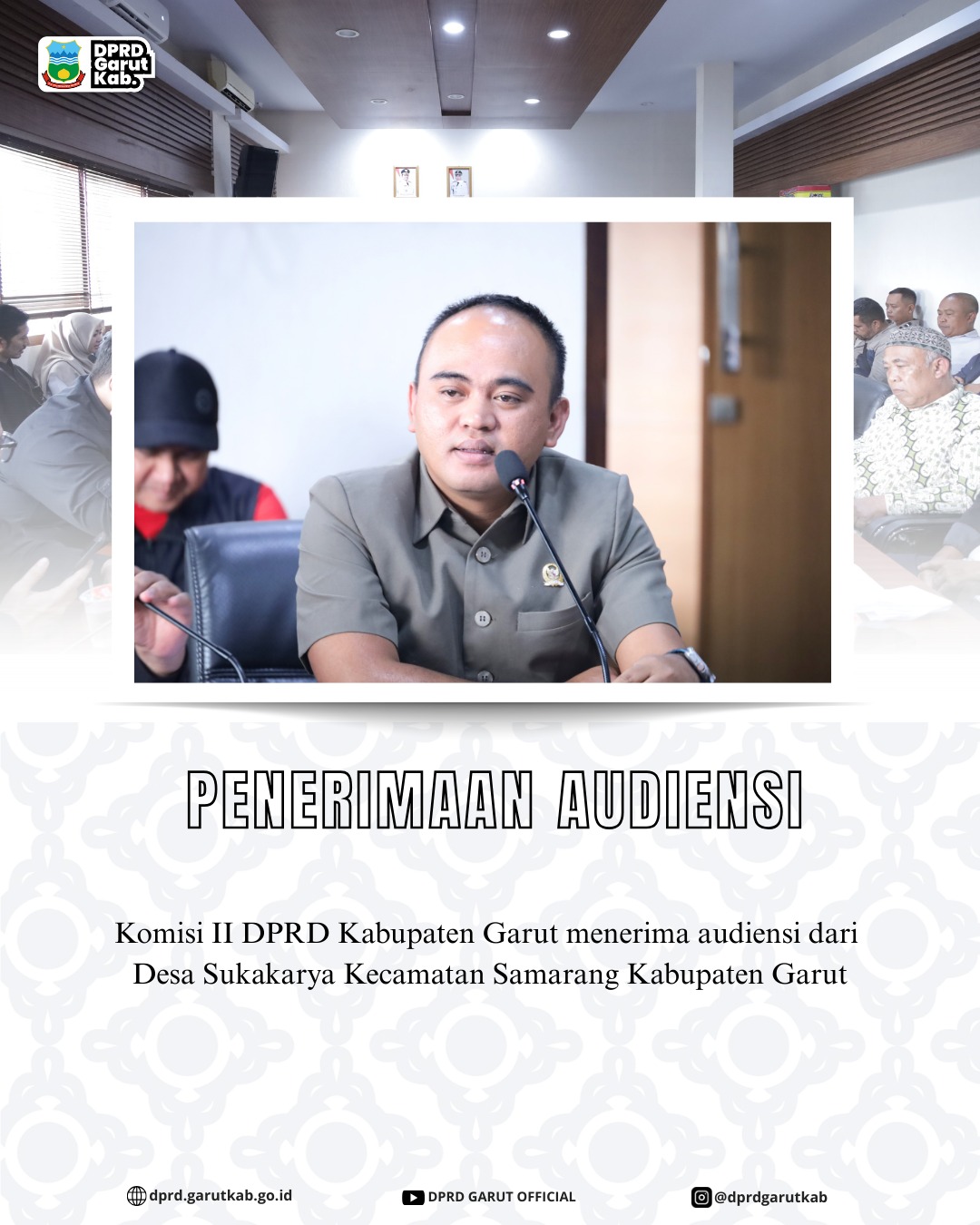 Penerimaan audiensi dari Masyarakat Peduli Anggaran Garut (MAPAG) oleh pimpinan sementara DPRD dan anggota DPRD Kab. Garut, terkait "Penjelasan Efektifitas Pelaksanaan dan/atau Penyusunan Perubahan Tata Tertib, Kode Etik dan Tata Beracara Badan Kehormatan DPRD Kab. Garut 2025-2029 serta Penjelasan Catatan Makro DPRD atas muatan RPJPD 2024-2045 & Teknokratik RPJMD Kab. Garut 2025-2029", Selasa (3/9).