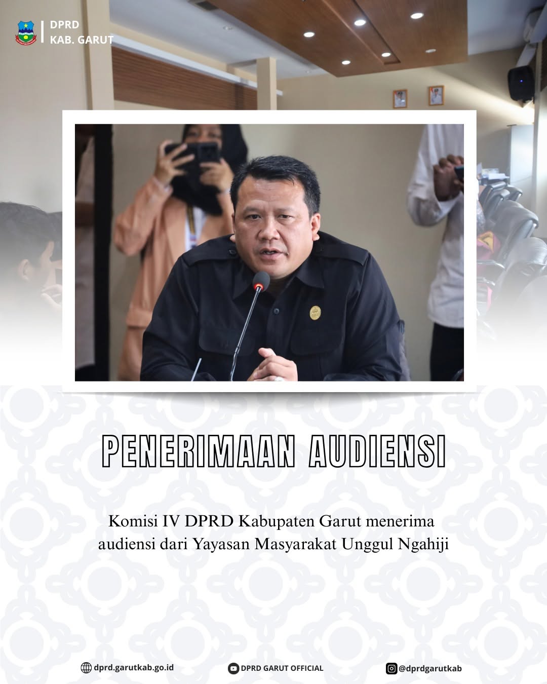 Garut - Komisi II DPRD Kabupaten Garut menerima audiensi dari Forum Masyarakat Pemerhati Pembangunan dan Pertanian (FMP3) Garut Selatan terkait Adanya Dugaan penggunaan Anggaran yang tidak sesuai dengan RAB dan diduga tidak sesuai dengan petunjuk teknis untuk Pembangunan Rumah Layak Huni dari Badan Nasional Penanggulangan Bencana (BNPB) yang dikelola melalui BPBD, Kamis (09/10/2025).